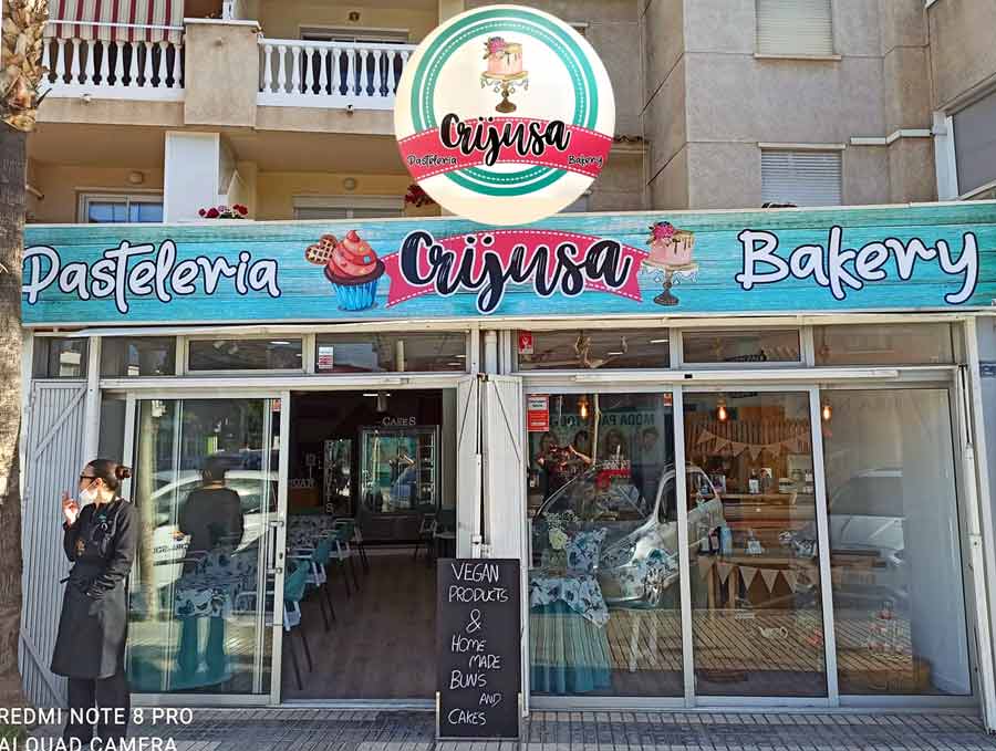 A local bakery and cake shop (pasteleria). Offering home made cakes, pastries, bread and all the special ingredients. Has a seating area for eating and drinking, A first class coffee and cake shop in Albir. Also serving Ice Creams and waffles.